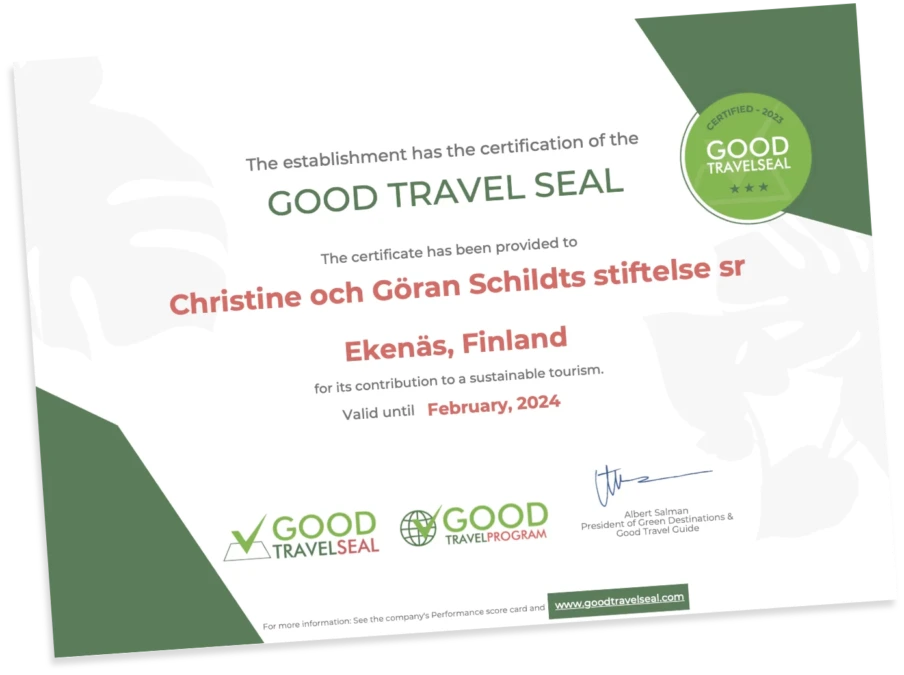 I februari beviljades vi Good Travel Seal certifikatet. Vi fortsätter jobba för en hållbarare framtid och förbättrar våra klimatåtgärder årligen i enlighet med vår hållbarhetsplan.